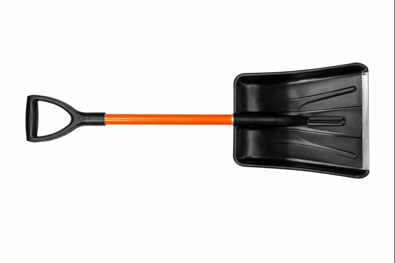 Съёмный металлический черенок делает лопату удобной для хранения и перевозки, а V-образная ручка обеспечивает уверенный хват даже в перчатках. Лёгкая конструкция снижает нагрузку на руки и позволяет работать быстрее, что особенно важно в мороз или на обочине дороги.