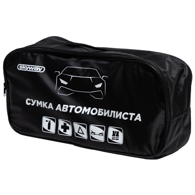 Сумка АВТОМОБИЛИСТА SKYWAY №3 44*22*13см Черная - сумка торговой марки SKYWAY позволит хранить самые необходимые для автомобилиста предметы под рукой. Она вместительная, но при этом довольно компактная. Обеспечивает удобное хранение всех аксессуаров. Сумка изготовлена из влагоотталкивающей ткани полиэстер с рисунком. Теперь не придется искать все по отдельности в разных местах салона или багажника, стоит только заглянуть в сумку автомобилиста, и Ваша безопасность в дальней дороге гарантирована.
