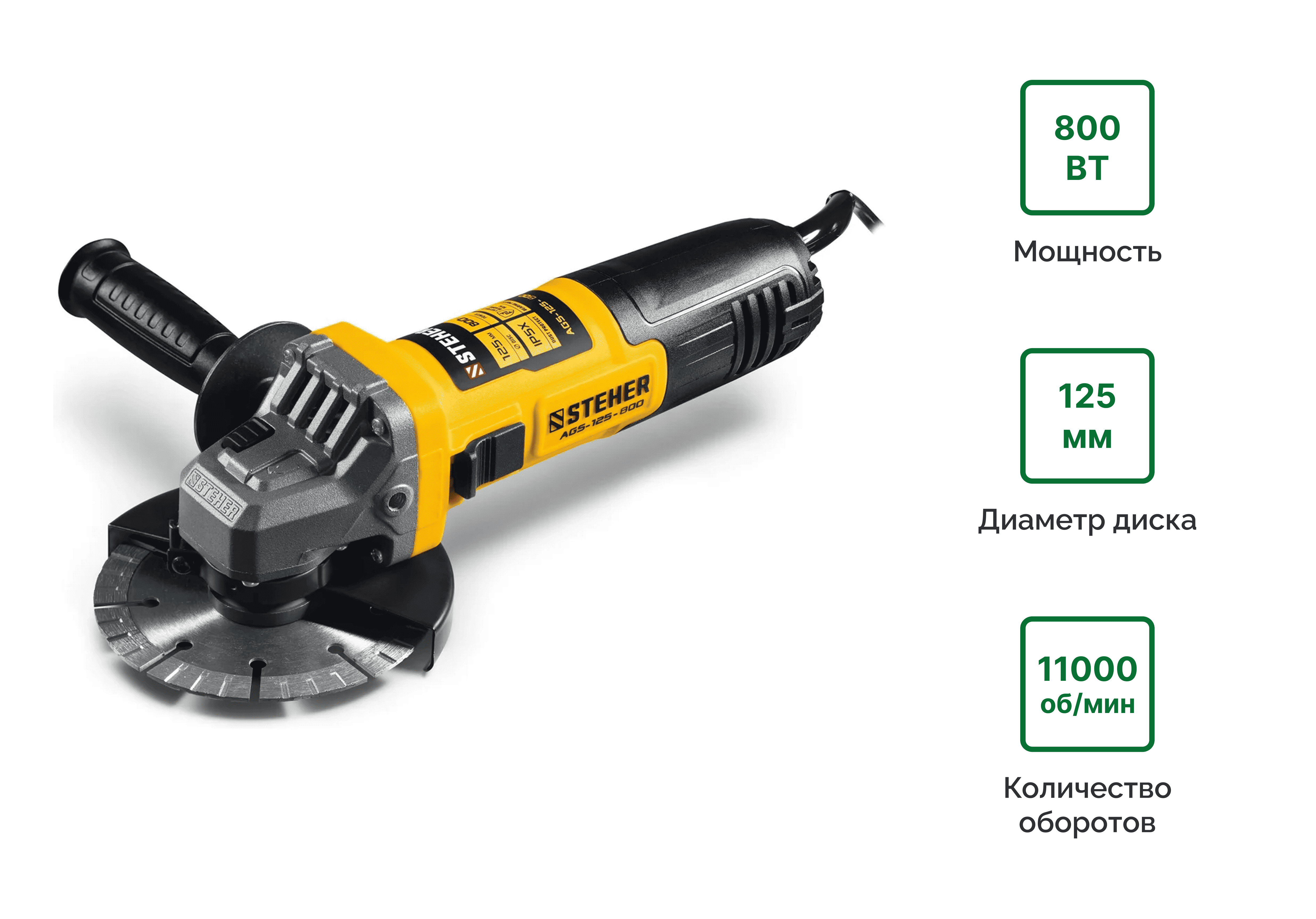 Машина шлифовальная угловая Steher AGS-125-800 800Вт