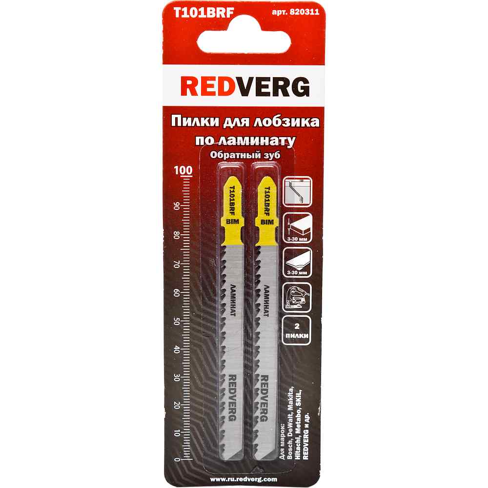 Пилка для лобзика REDVERG по ламинату T101BRF обратный зуб, BIM (2шт)