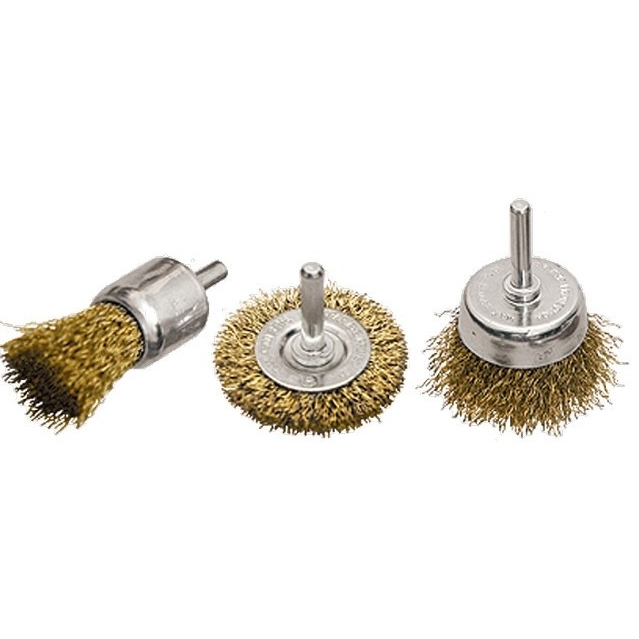 Набор щеток Matrix для дрели – это надежные инструменты для очистки металла, включающий плоскую щетку 50 мм и две чашковые щетки (25 и 50 мм), каждая с металлическими шпильками. Щетки сделаны из стальной проволоки с латунным покрытием, что обеспечивает их исключительную прочность и защиту от коррозии. Этот набор создан для деликатной обработки металлических поверхностей, эффективно устраняя ржавчину, грязь и прочие загрязнения. Превосходное качество материалов и конструкции гарантирует долгий срок службы и безупречный результат. Используя этот набор, вы сможете легко и качественно подготовить металлические изделия к покраске или другим видам обработки.